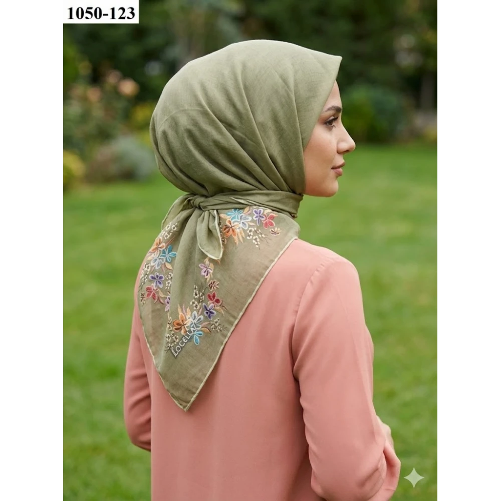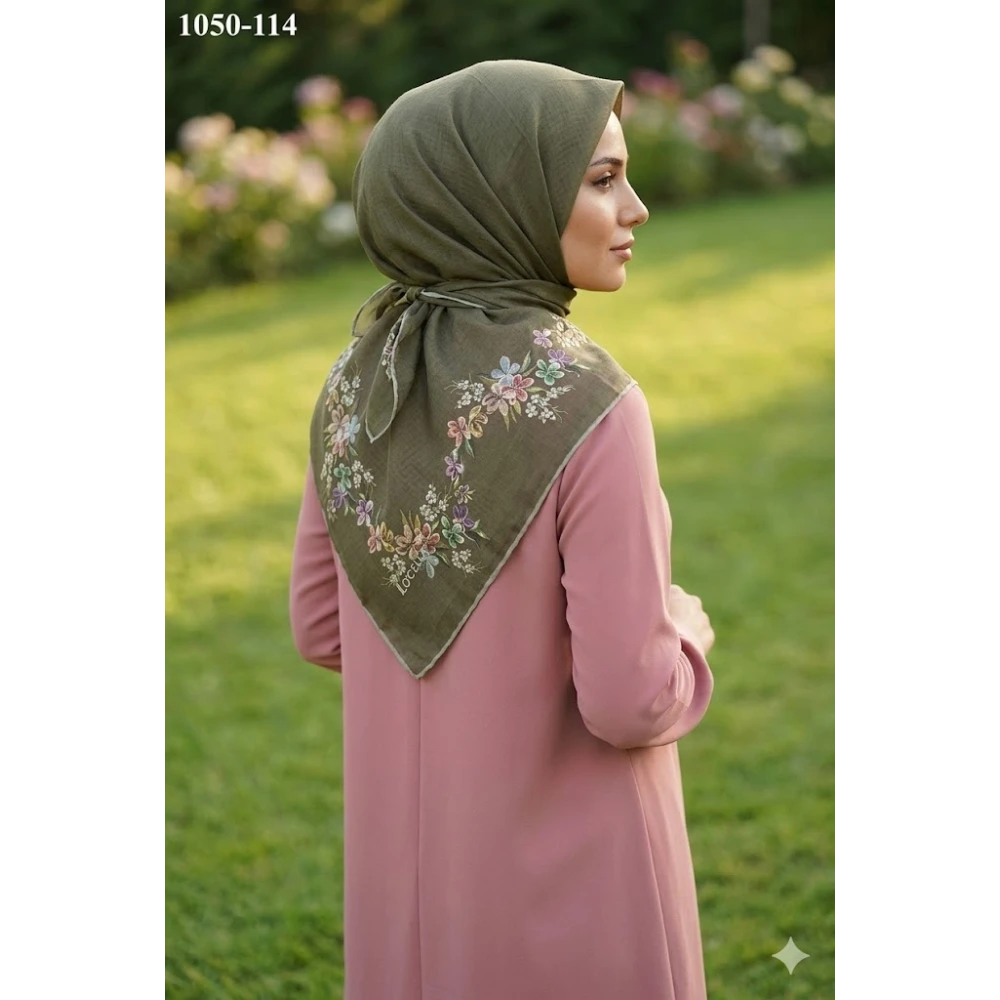 Düz Renk Bambu Pamuk Eşarp Haki 333-122