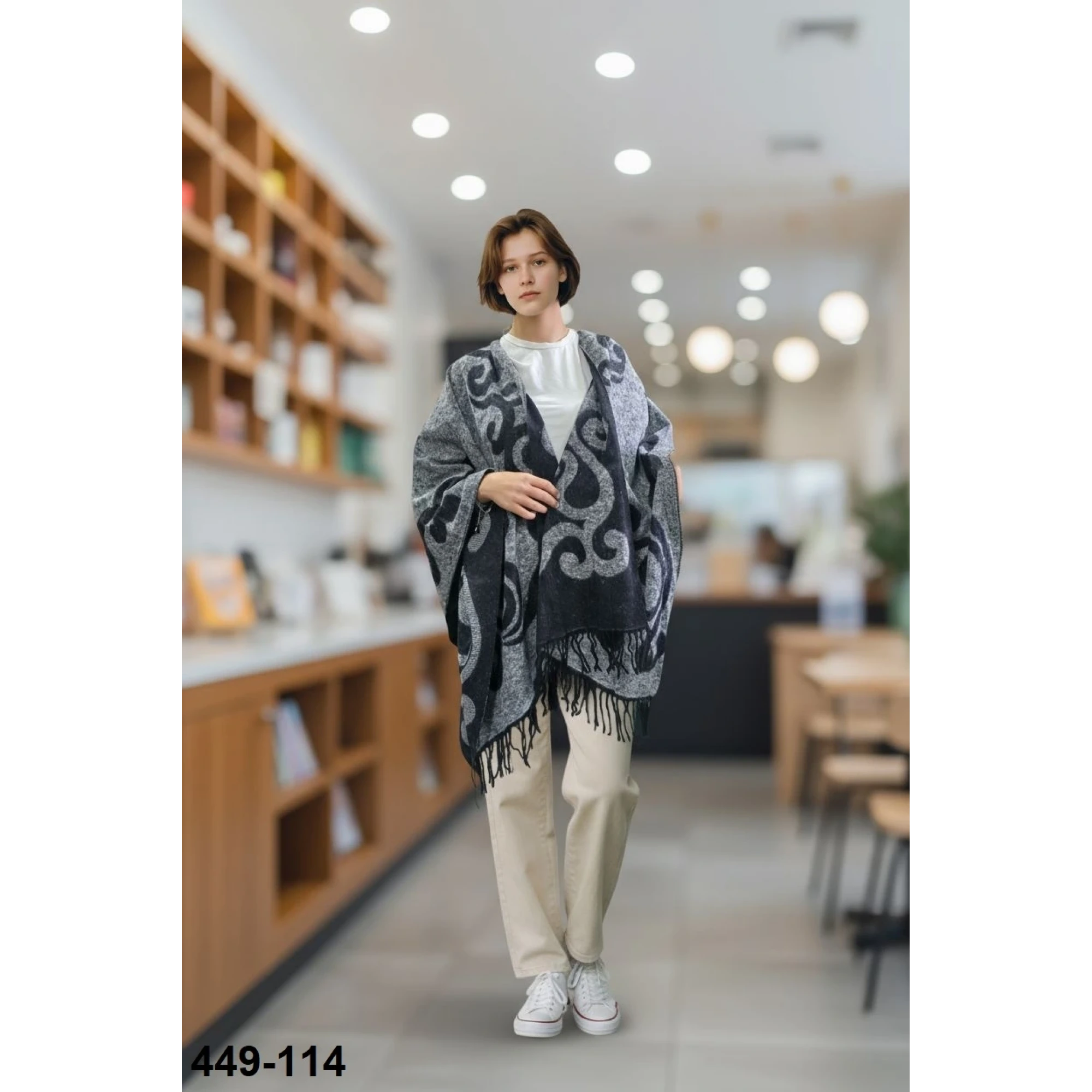 Bayan Kışlık Çift Taraflı Panço Şal 449-114
