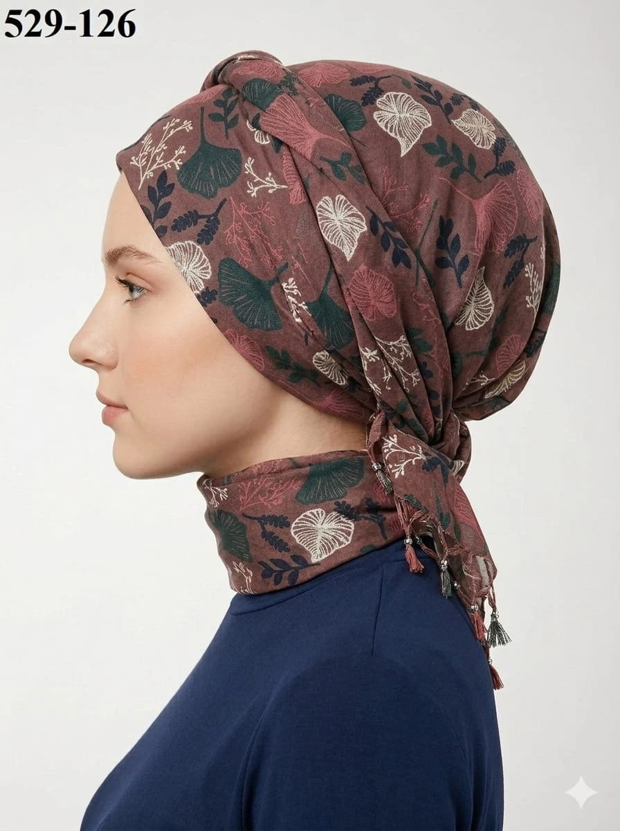 Dolce Life Desenli Sökme Boncuklu Eşarp 529-126