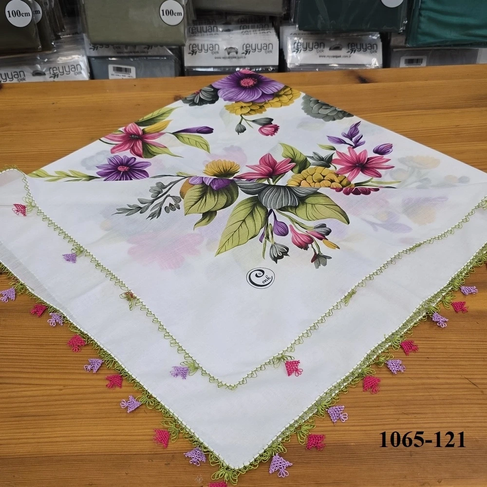 İğne oyası ürünlerimizin tamamı, sektörün en çok tercih edilen, kalitesiyle rüştünü ispatlamış Cenk veya Reyyan İpek markalı yazmalar üzerine işlenmektedir. Yüksek kaliteli kumaş yapısı sayesinde uzun ömürlüdür, renkleri solmaz ve iğne oyası motiflerini kusursuz bir şekilde taşır.