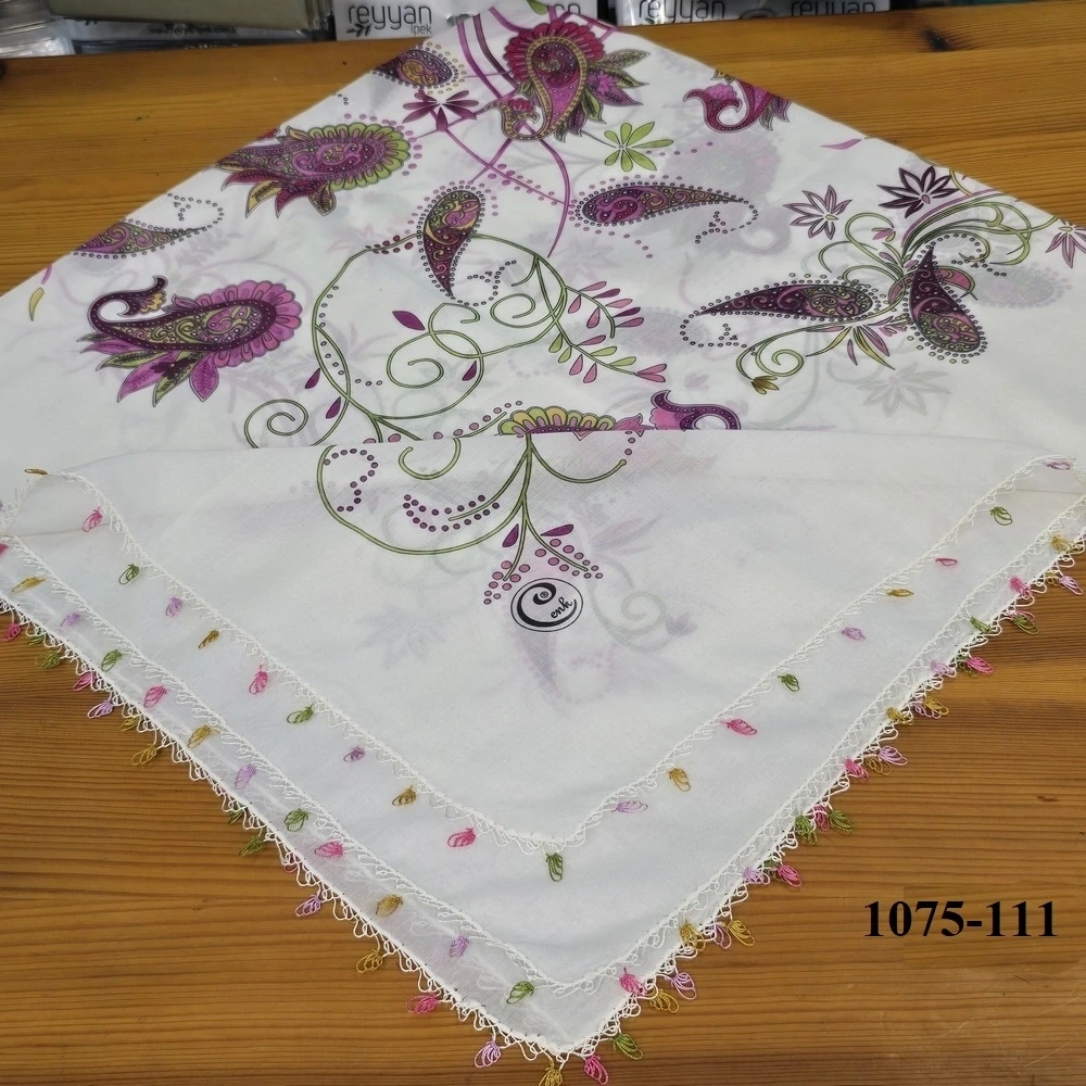 İğne oyası ürünlerimizin tamamı, sektörün en çok tercih edilen, kalitesiyle rüştünü ispatlamış Cenk veya Reyyan İpek markalı yazmalar üzerine işlenmektedir. Yüksek kaliteli kumaş yapısı sayesinde uzun ömürlüdür, renkleri solmaz ve iğne oyası motiflerini kusursuz bir şekilde taşır.