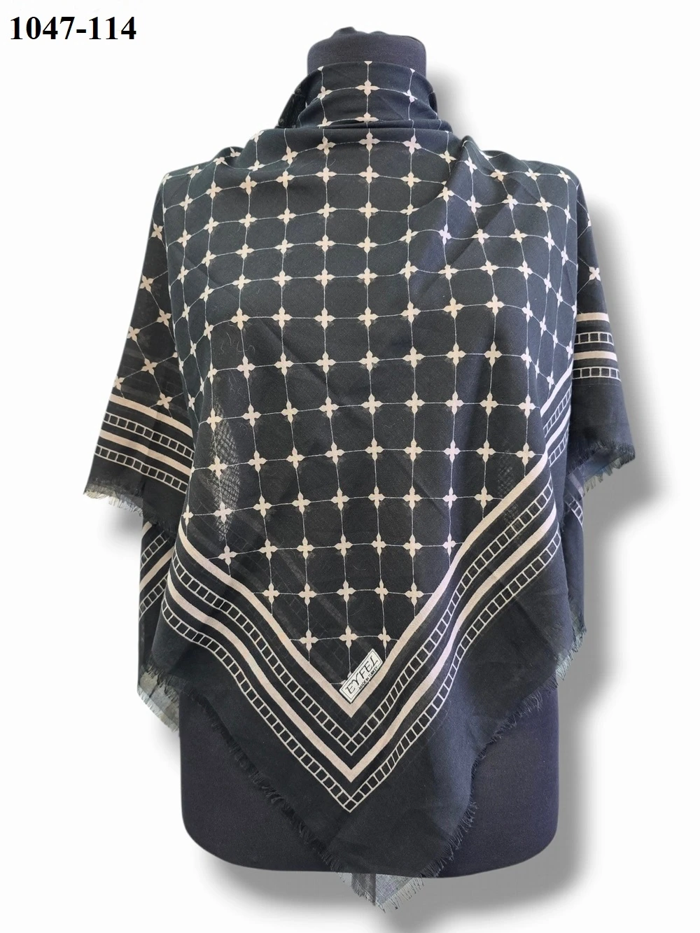 • Eyfel Desenli Dimi Pamuk Eşarp Ölçü: 100x100 cm ideal kare ebat. Doku: Kayma yapmayan, tok duruşlu dimi dokuma. Konfor: Gün boyu başta ağırlık yapmaz, terletmez. Kullanım: Kolay şekil alır, önü dik durur ve iç göstermez.