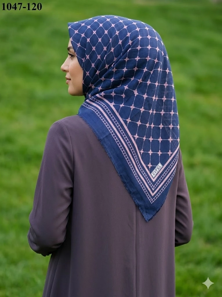 • Eyfel Desenli Dimi Pamuk Eşarp Ölçü: 100x100 cm ideal kare ebat. Doku: Kayma yapmayan, tok duruşlu dimi dokuma. Konfor: Gün boyu başta ağırlık yapmaz, terletmez. Kullanım: Kolay şekil alır, önü dik durur ve iç göstermez.