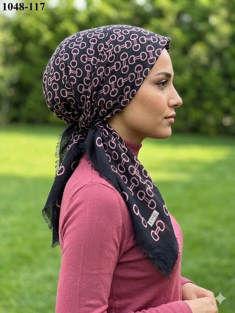 • Eyfel Desenli Dimi Pamuk Eşarp Ölçü: 100x100 cm ideal kare ebat. Doku: Kayma yapmayan, tok duruşlu dimi dokuma. Konfor: Gün boyu başta ağırlık yapmaz, terletmez. Kullanım: Kolay şekil alır, önü dik durur ve iç göstermez.