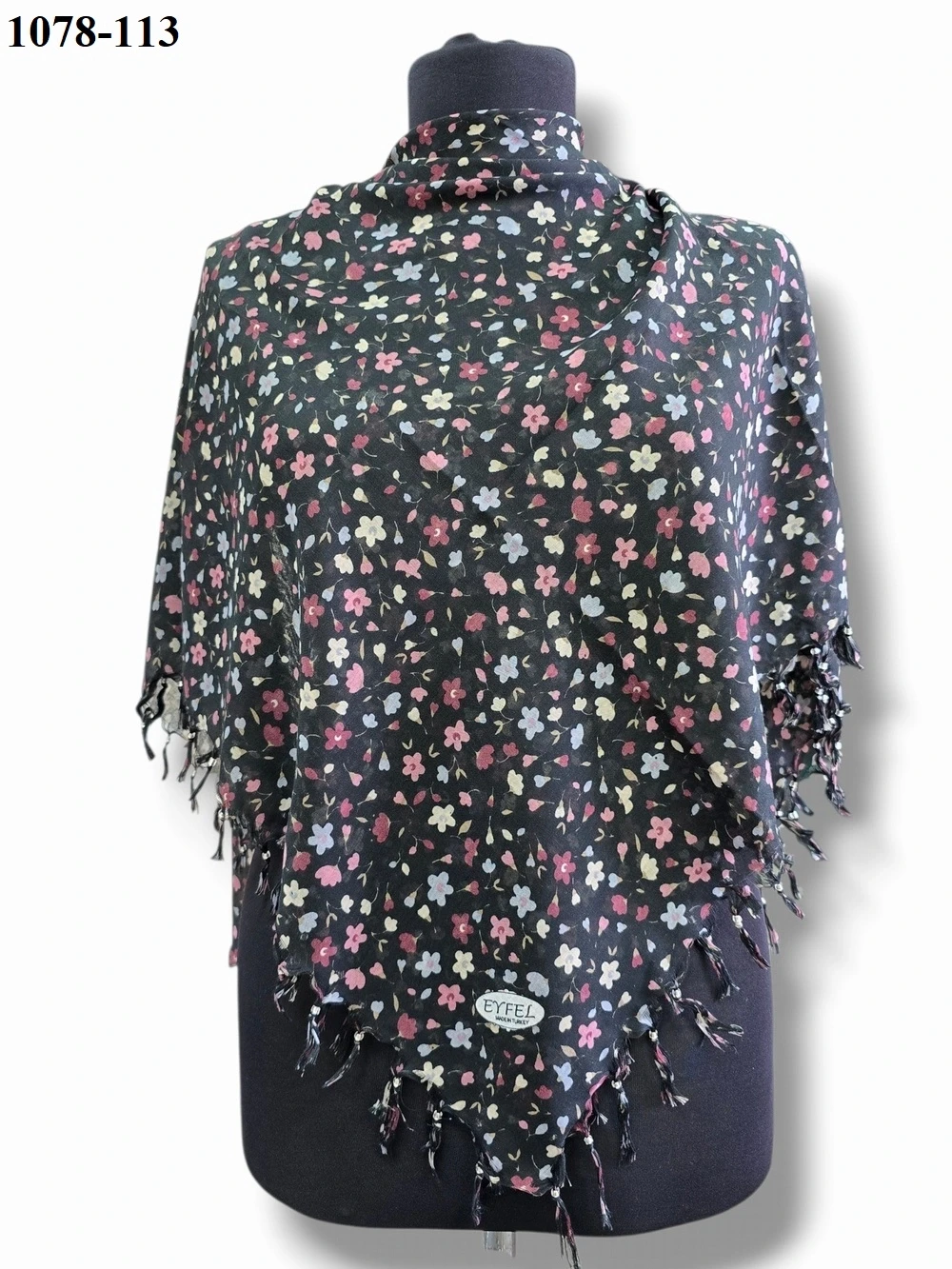 Anahtar Kelimeler: Eyfel desenli eşarp, boncuklu eşarp modelleri, 110x110 eşarp, sökme boncuklu eşarp, büyük boy şık eşarp.