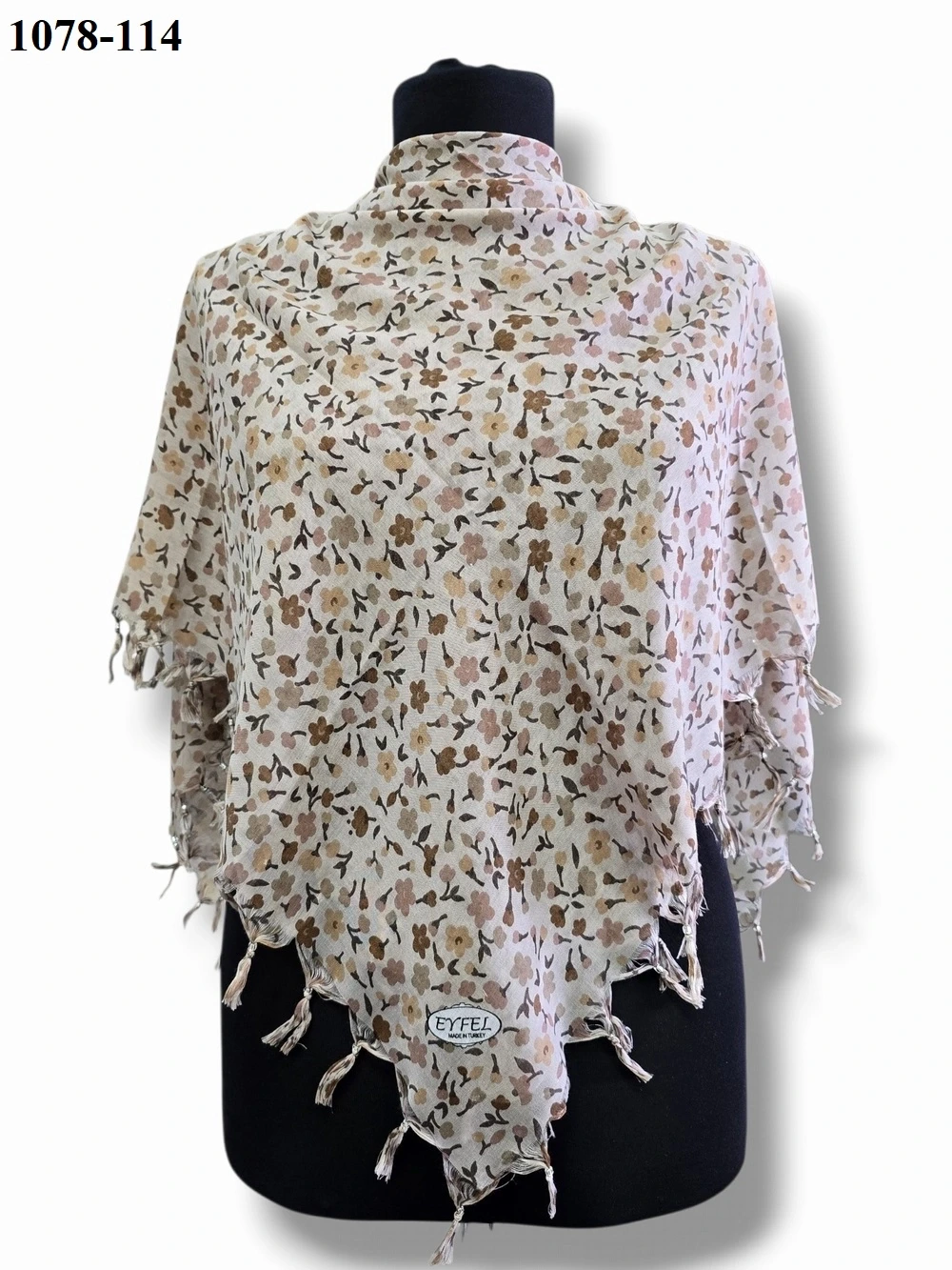 Anahtar Kelimeler: Eyfel desenli eşarp, boncuklu eşarp modelleri, 110x110 eşarp, sökme boncuklu eşarp, büyük boy şık eşarp.