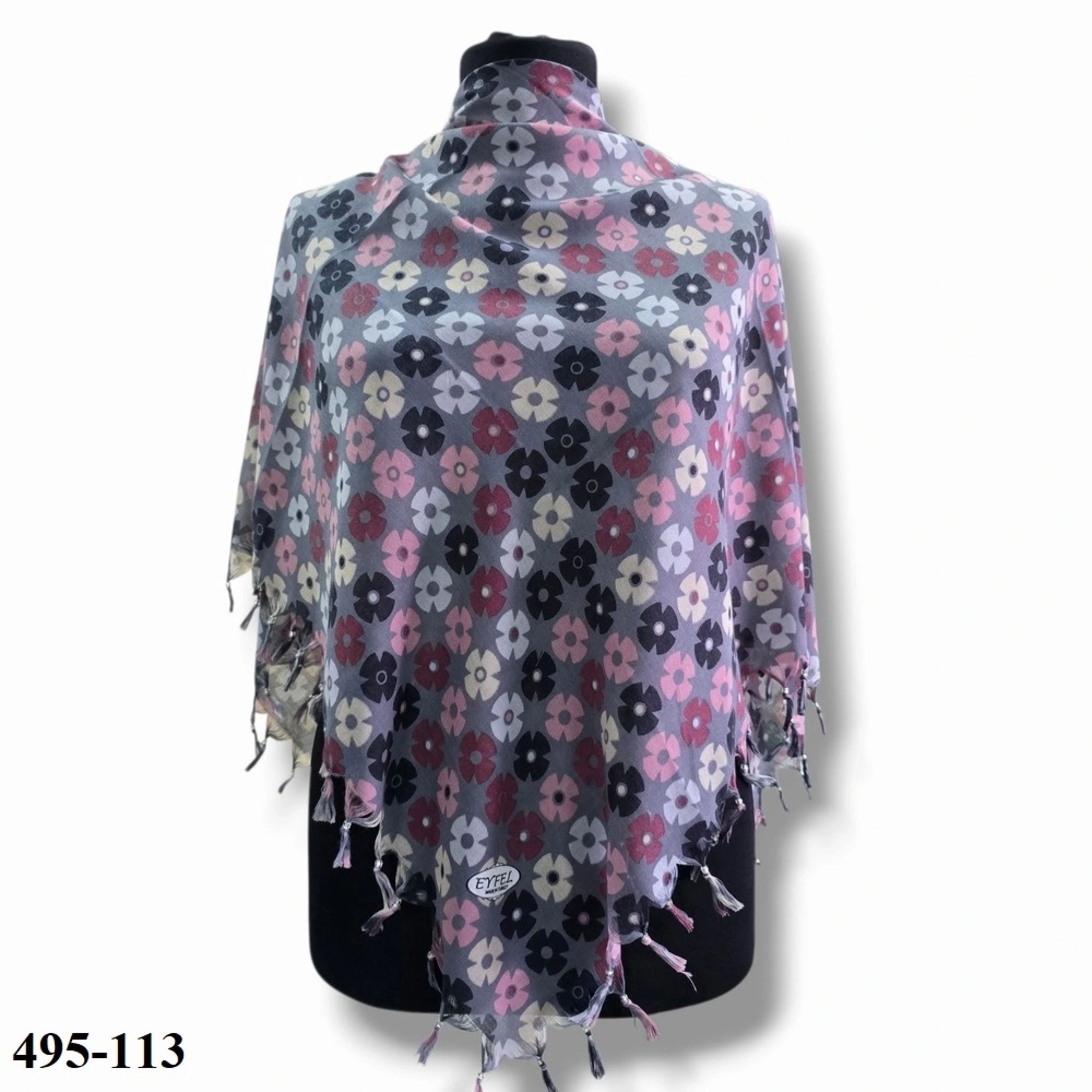 Eyfel Desenli Sökme Boncuklu Eşarp 495-113