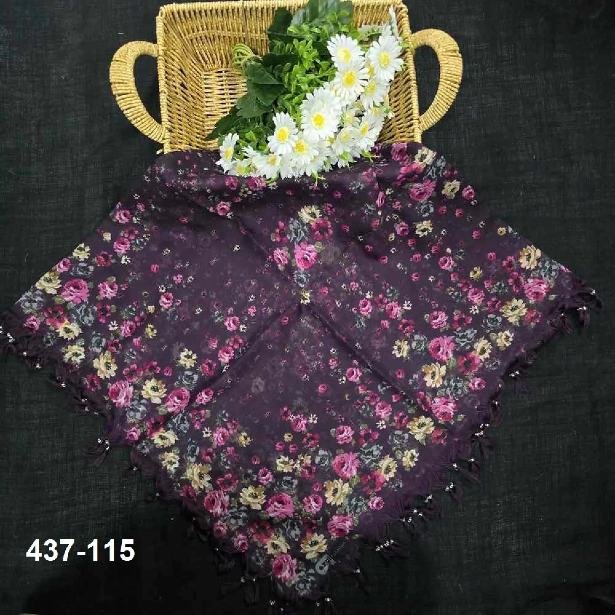 Ezgi Fashion Desenli Sökme Boncuklu Eşarp 437-115
