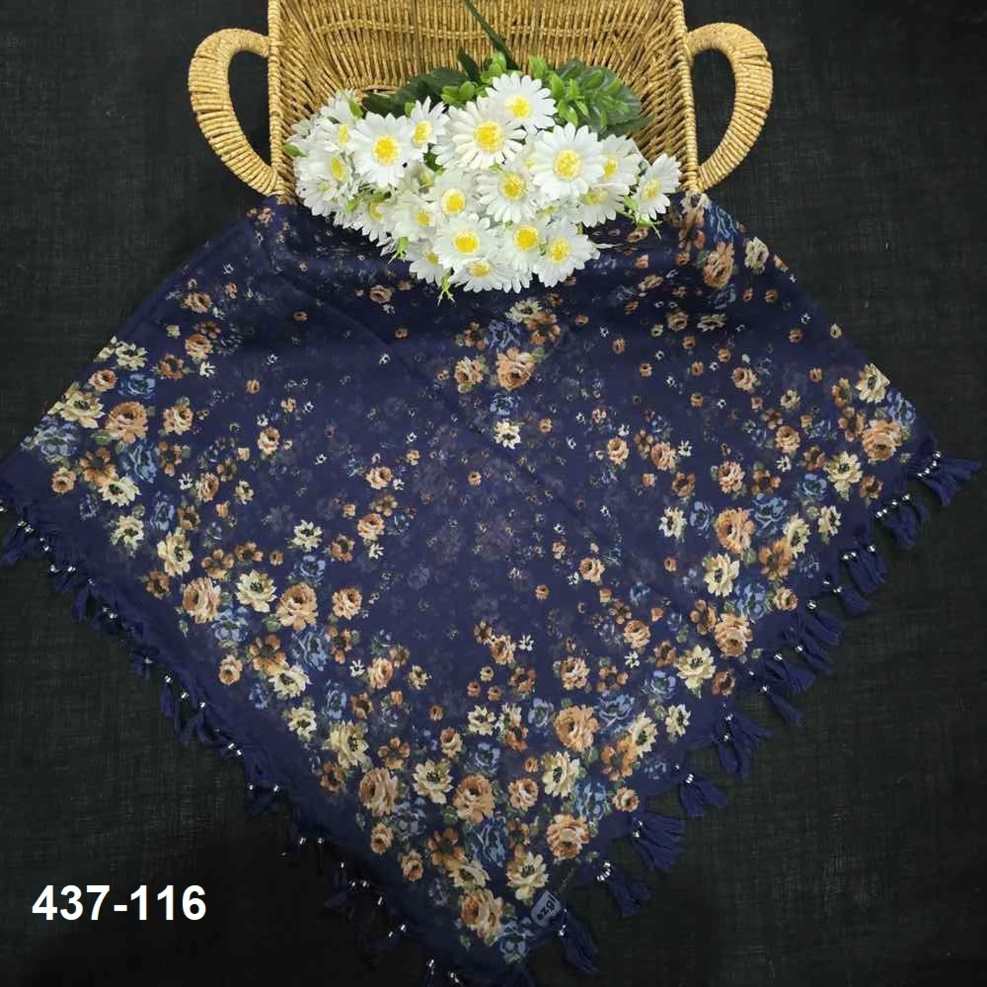 Ezgi Fashion Desenli Sökme Boncuklu Eşarp 437-116