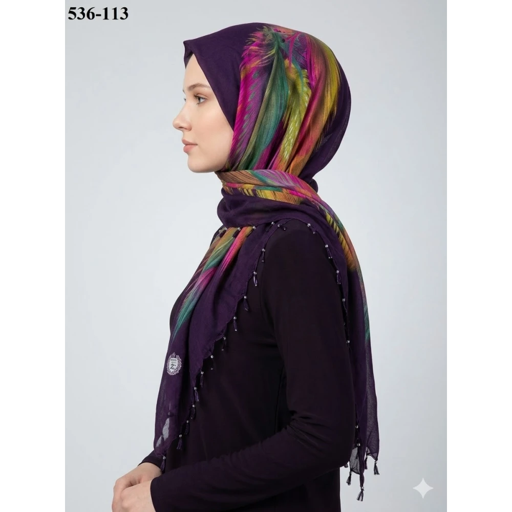 Naz İpek Desenli Sökme Boncuklu Eşarp 536-113