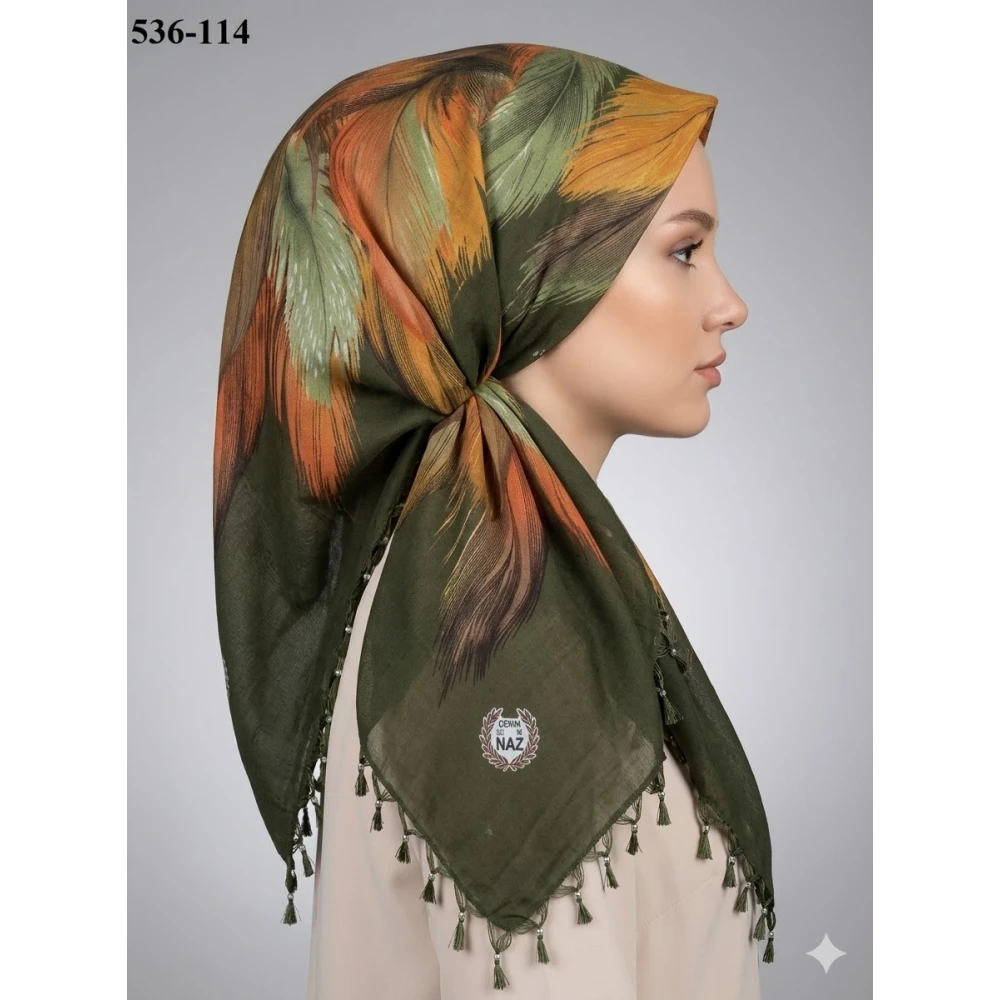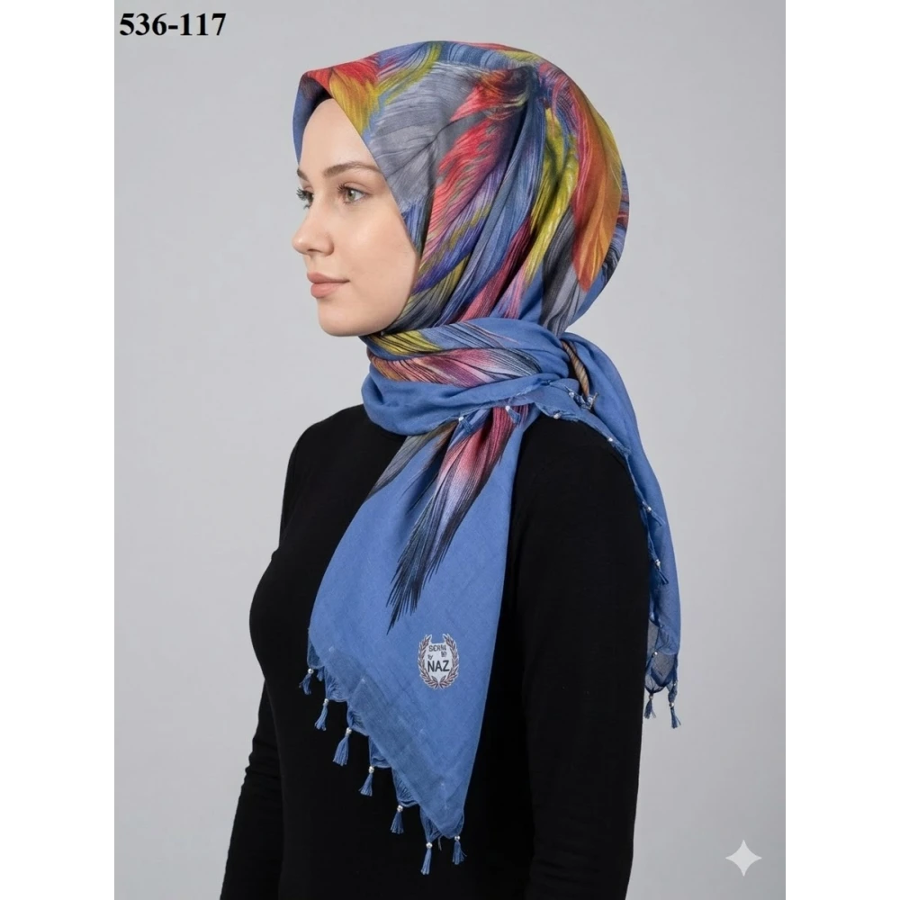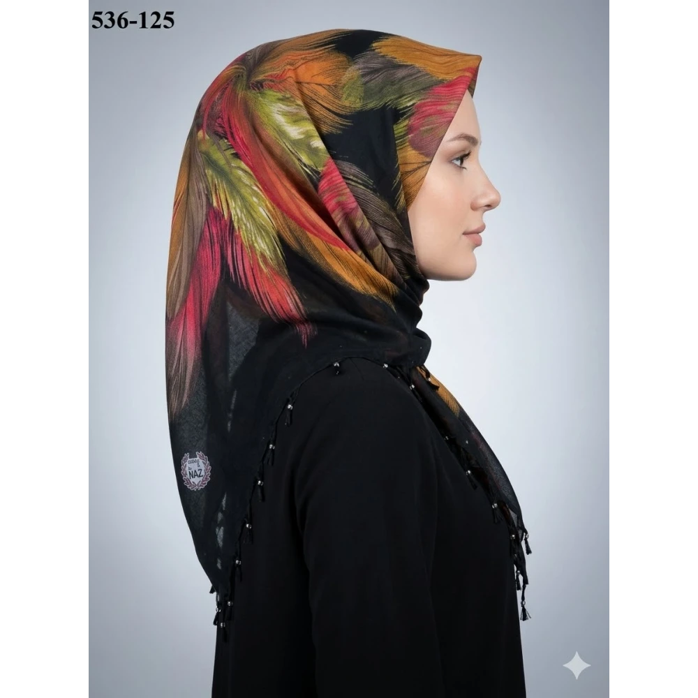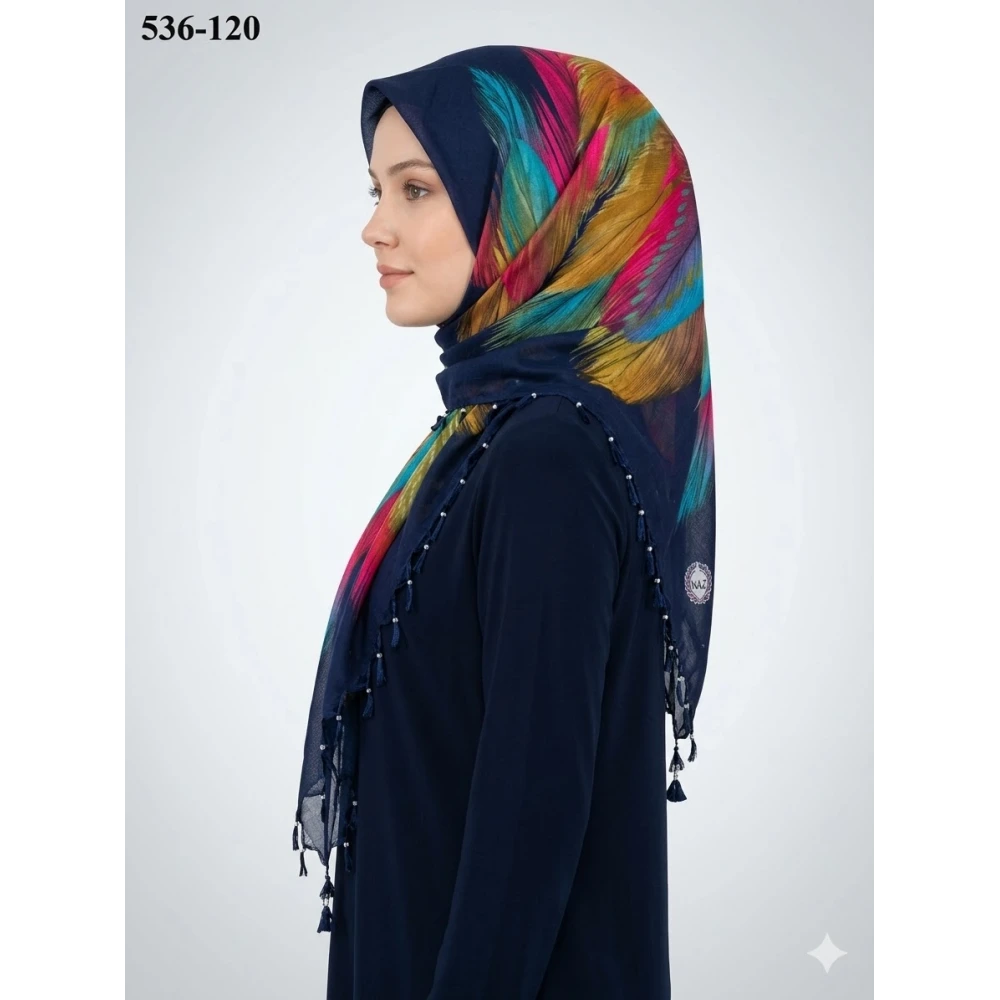 Naz İpek Desenli Sökme Boncuklu Eşarp 536-120