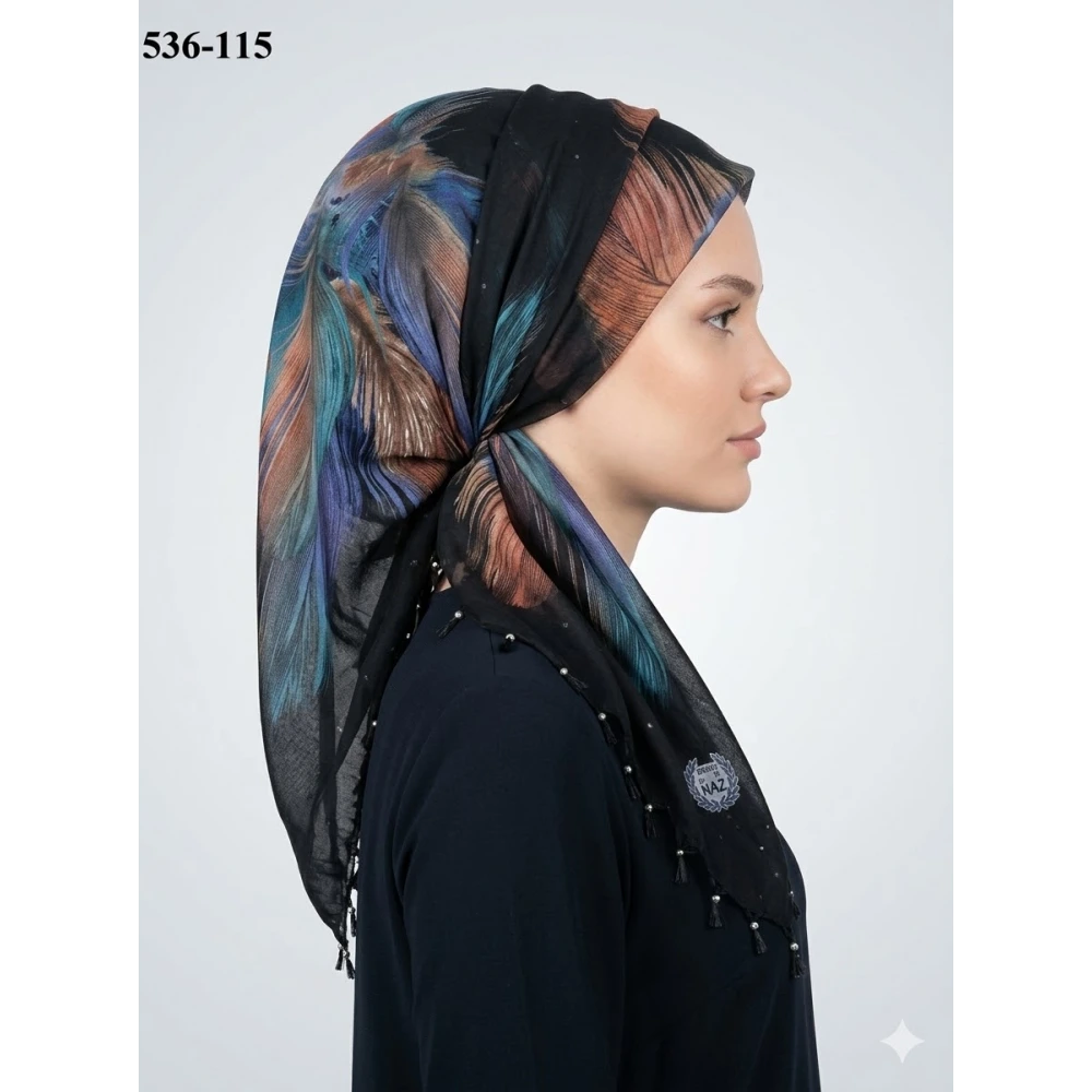 Naz İpek Desenli Sökme Boncuklu Eşarp 536-115