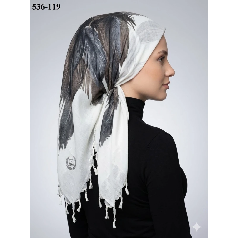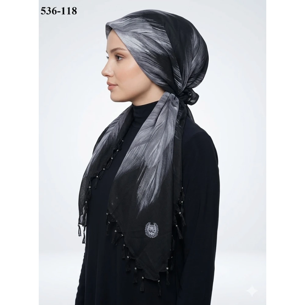 Naz İpek Desenli Sökme Boncuklu Eşarp 536-119