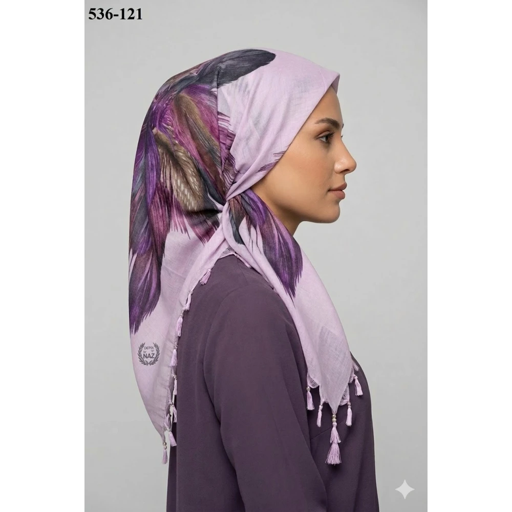 Naz İpek Desenli Sökme Boncuklu Eşarp 536-121