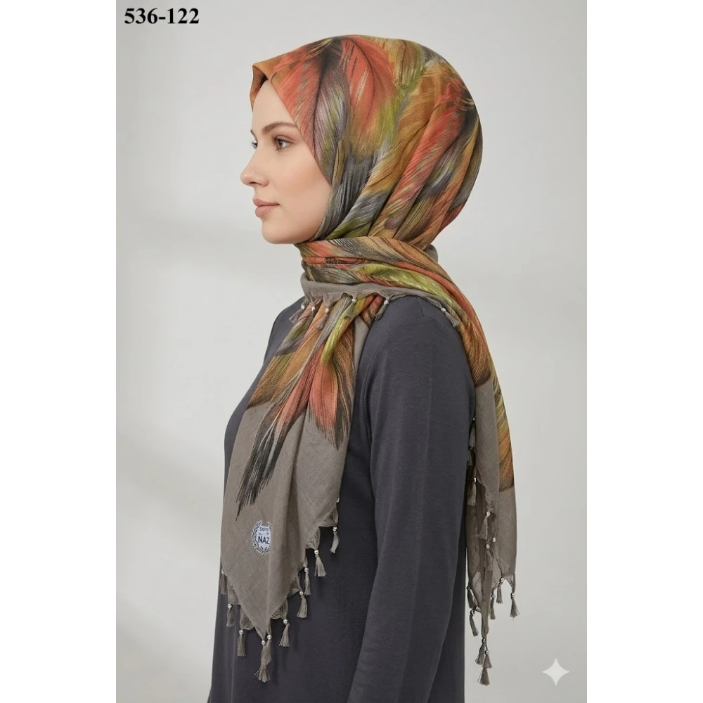Naz İpek Desenli Sökme Boncuklu Eşarp 536-122