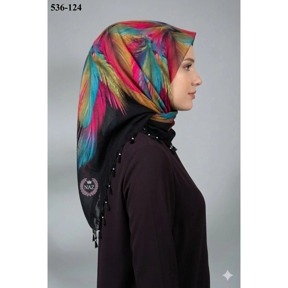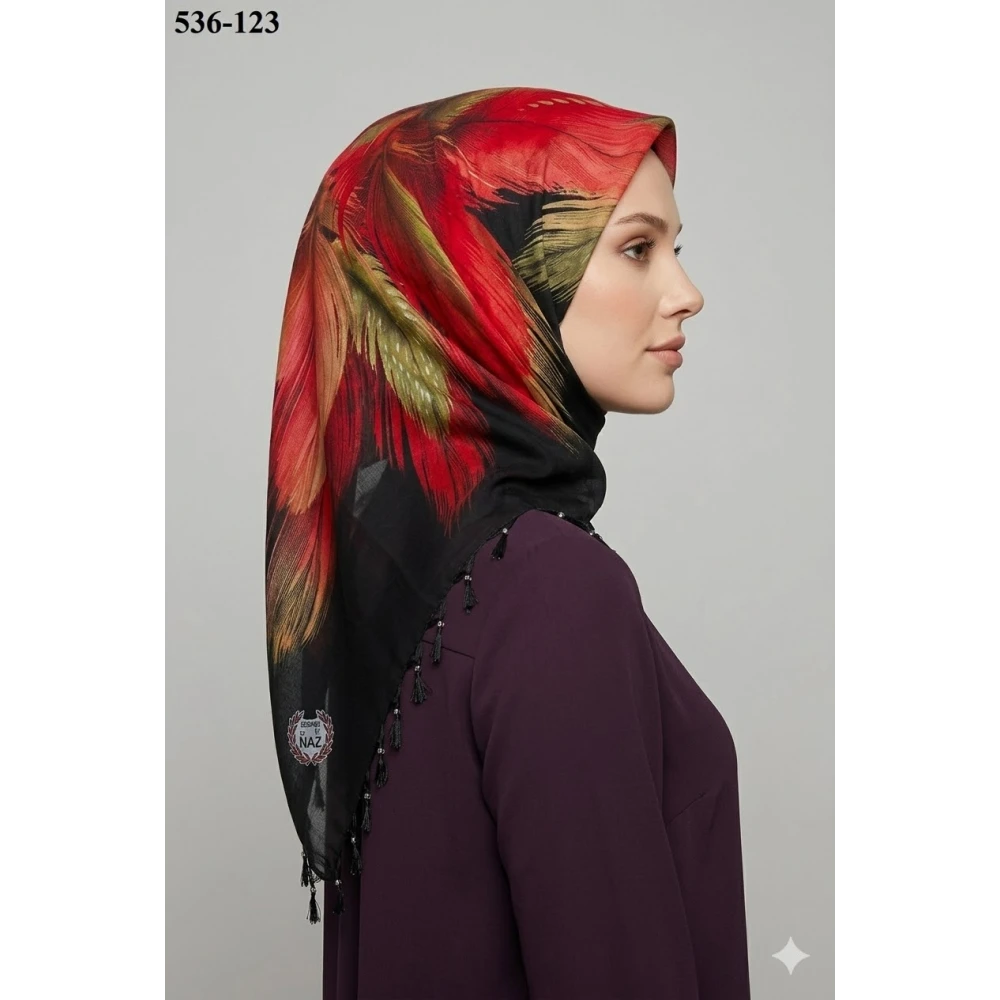 Naz İpek Desenli Sökme Boncuklu Eşarp 536-124