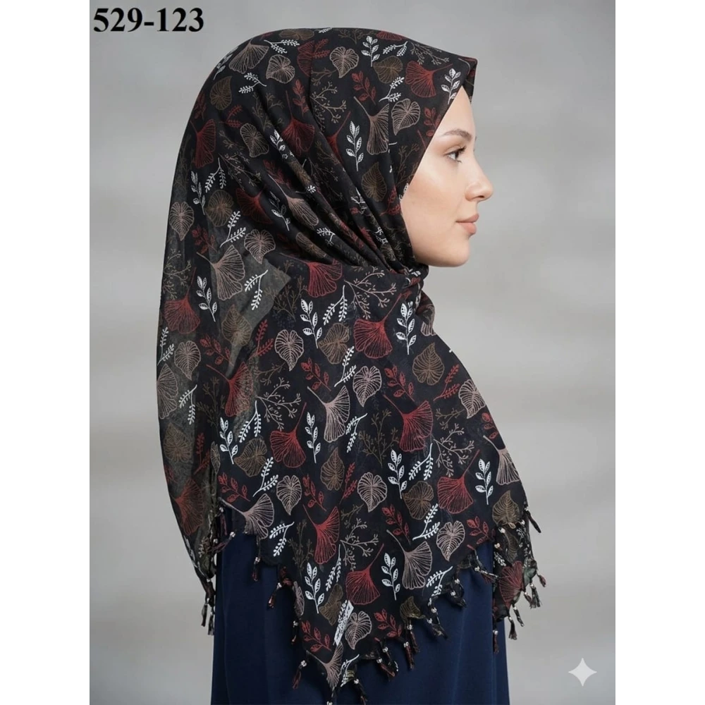 Dolce Life Desenli Sökme Boncuklu Eşarp 529-121