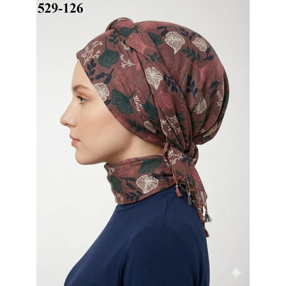 Dolce Life Desenli Sökme Boncuklu Eşarp 529-124