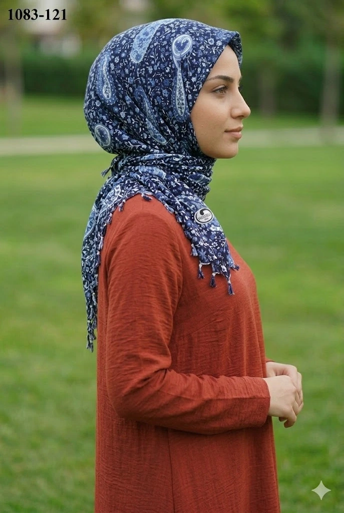 Huzurlu İpek Desenli Sökme Boncuklu Eşarp 1083-121