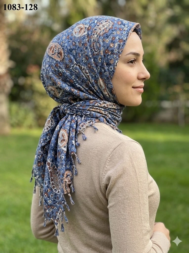 Huzurlu İpek Desenli Sökme Boncuklu Eşarp 1083-128