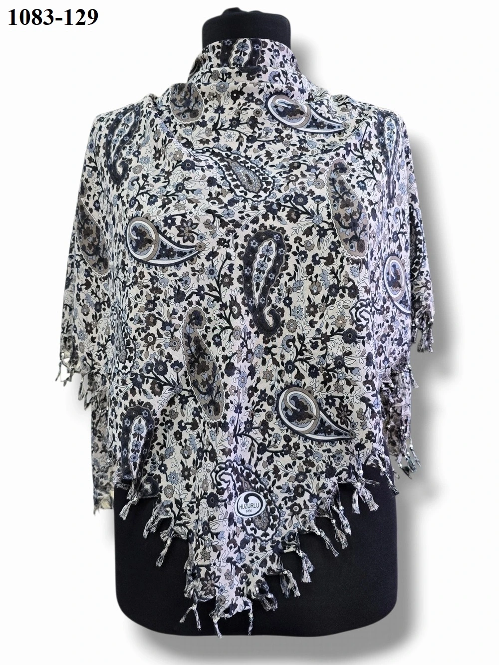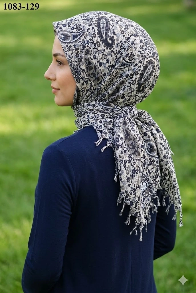 Huzurlu İpek Desenli Sökme Boncuklu Eşarp 1083-129