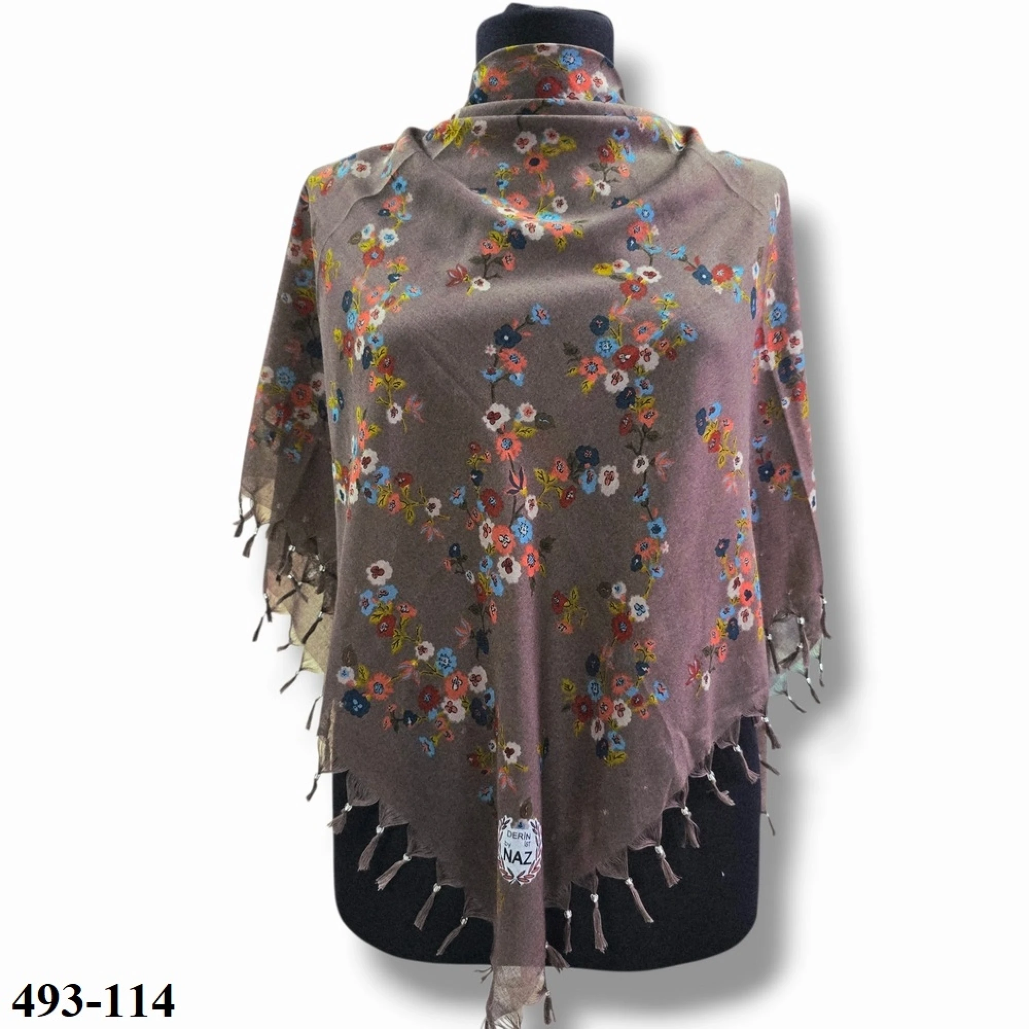 Naz İpek Desenli Sökme Boncuklu Eşarp 493-114