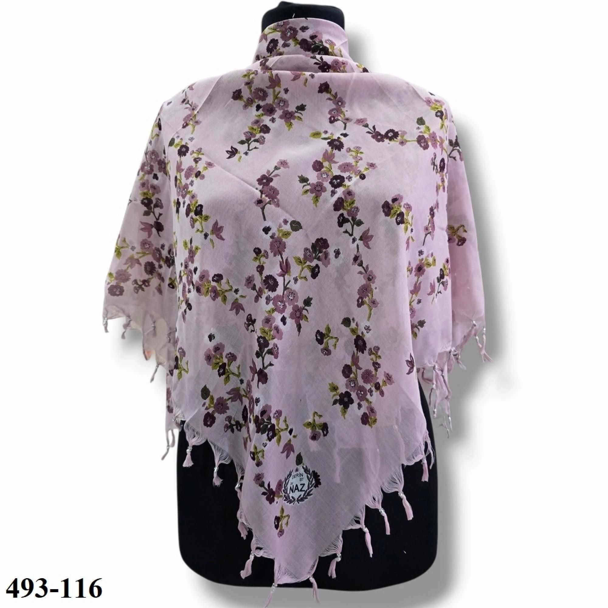Naz İpek Desenli Sökme Boncuklu Eşarp 493-116