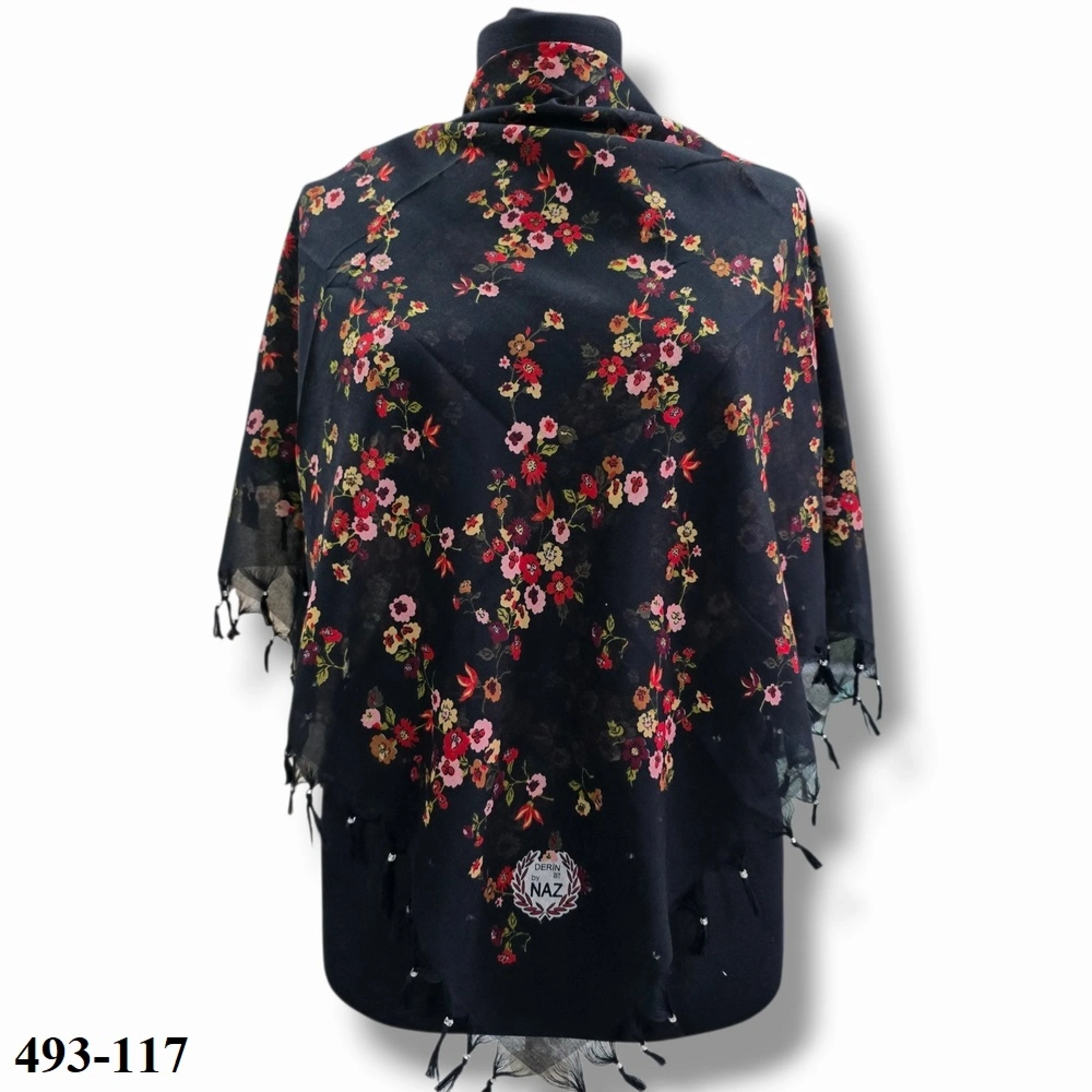 Naz İpek Desenli Sökme Boncuklu Eşarp 493-117