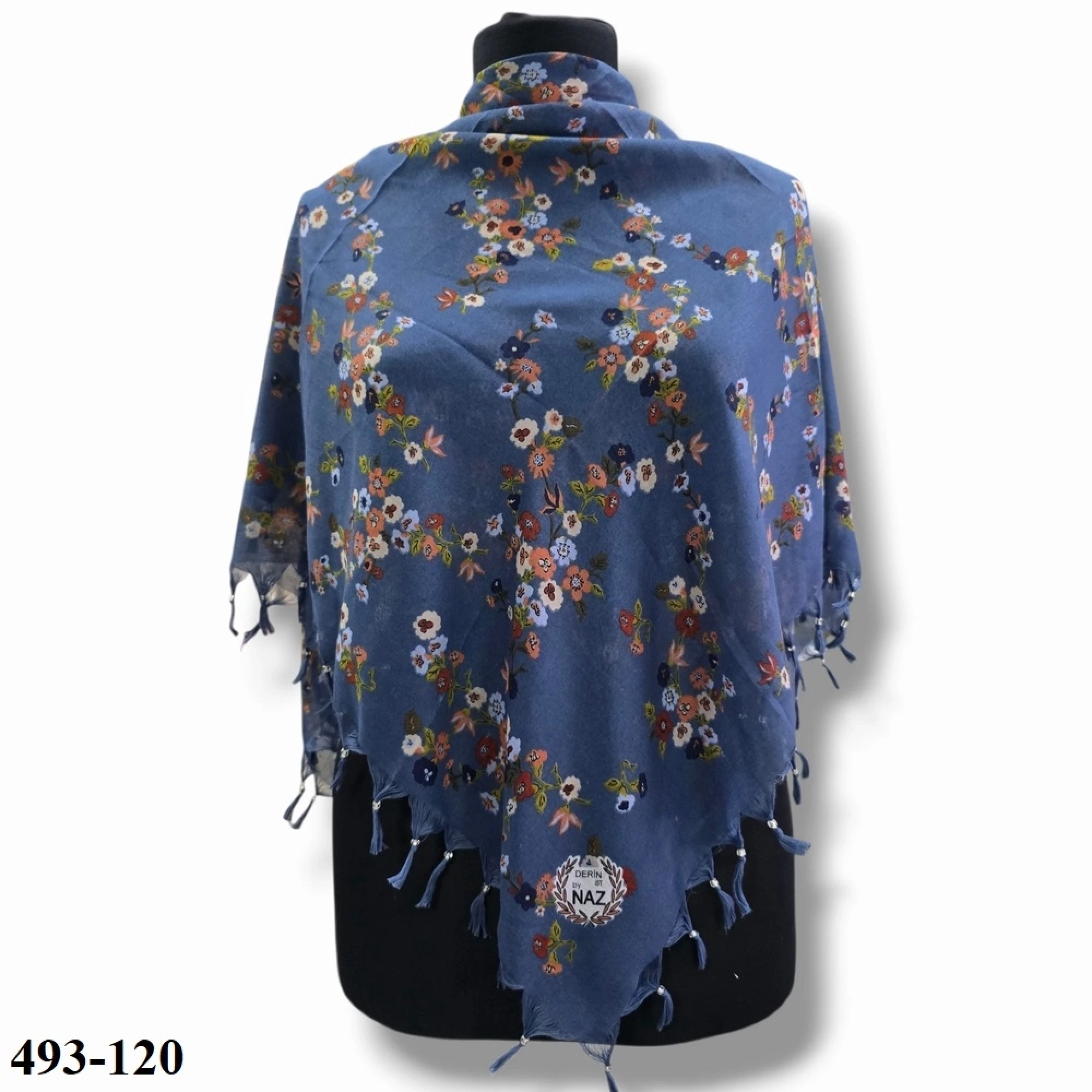 Naz İpek Desenli Sökme Boncuklu Eşarp 493-120