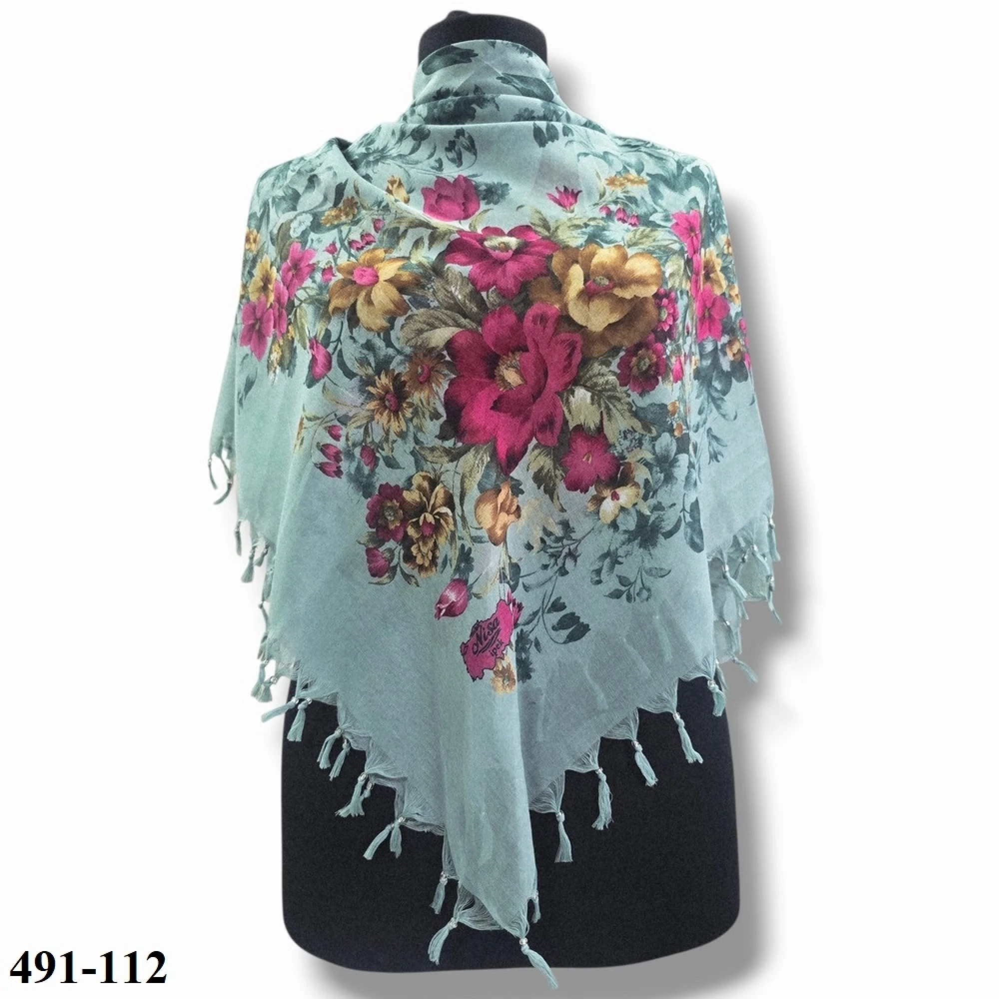 Nisa İpek Desenli Sökme Boncuklu Eşarp 491-112