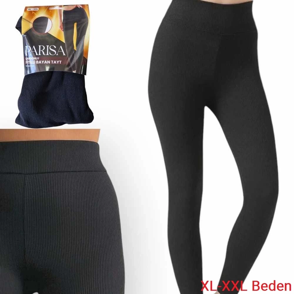 Parisa Fitilli Şardonlu Kışlık Bayan Tayt XL-XXL Beden Siyah