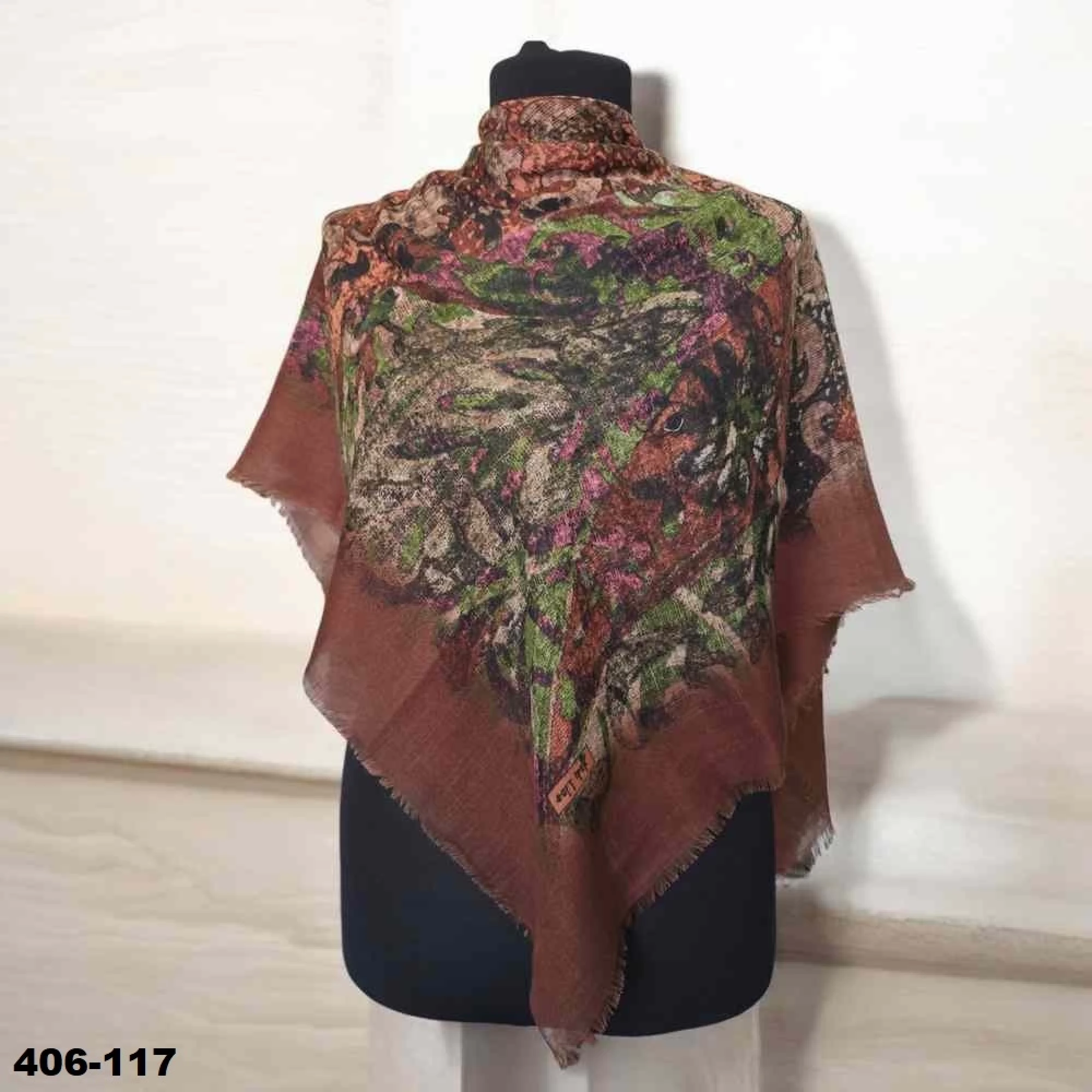 Soft İpek Desenli Flamlı Kotton Eşarp 406-117