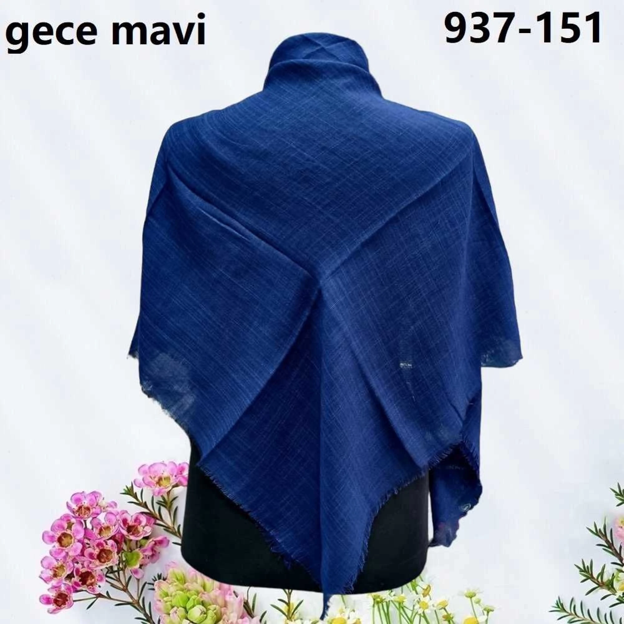 Soft İpek Düz Renk Flamlı Pamuk Eşarp (Gece Mavisi) 937-151