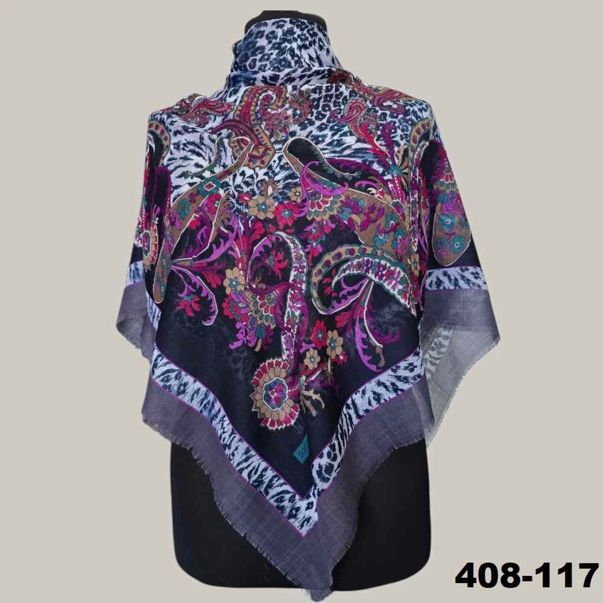 Soft İpek Etnik Desenli Flamlı Kotton Eşarp 408-117