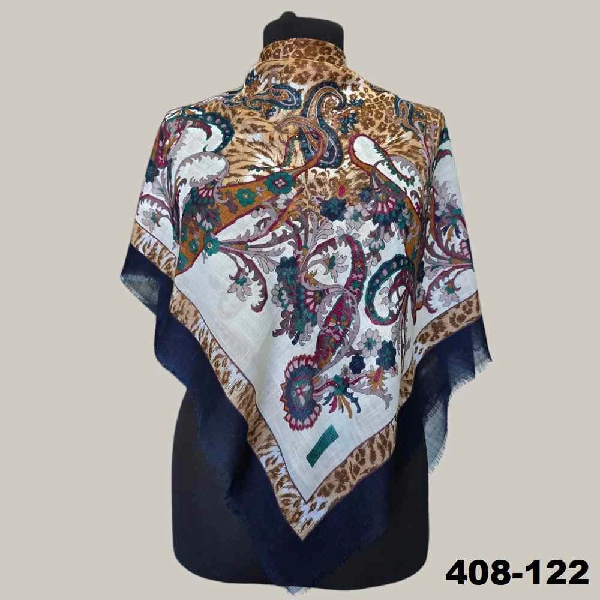 Soft İpek Etnik Desenli Flamlı Kotton Eşarp 408-122