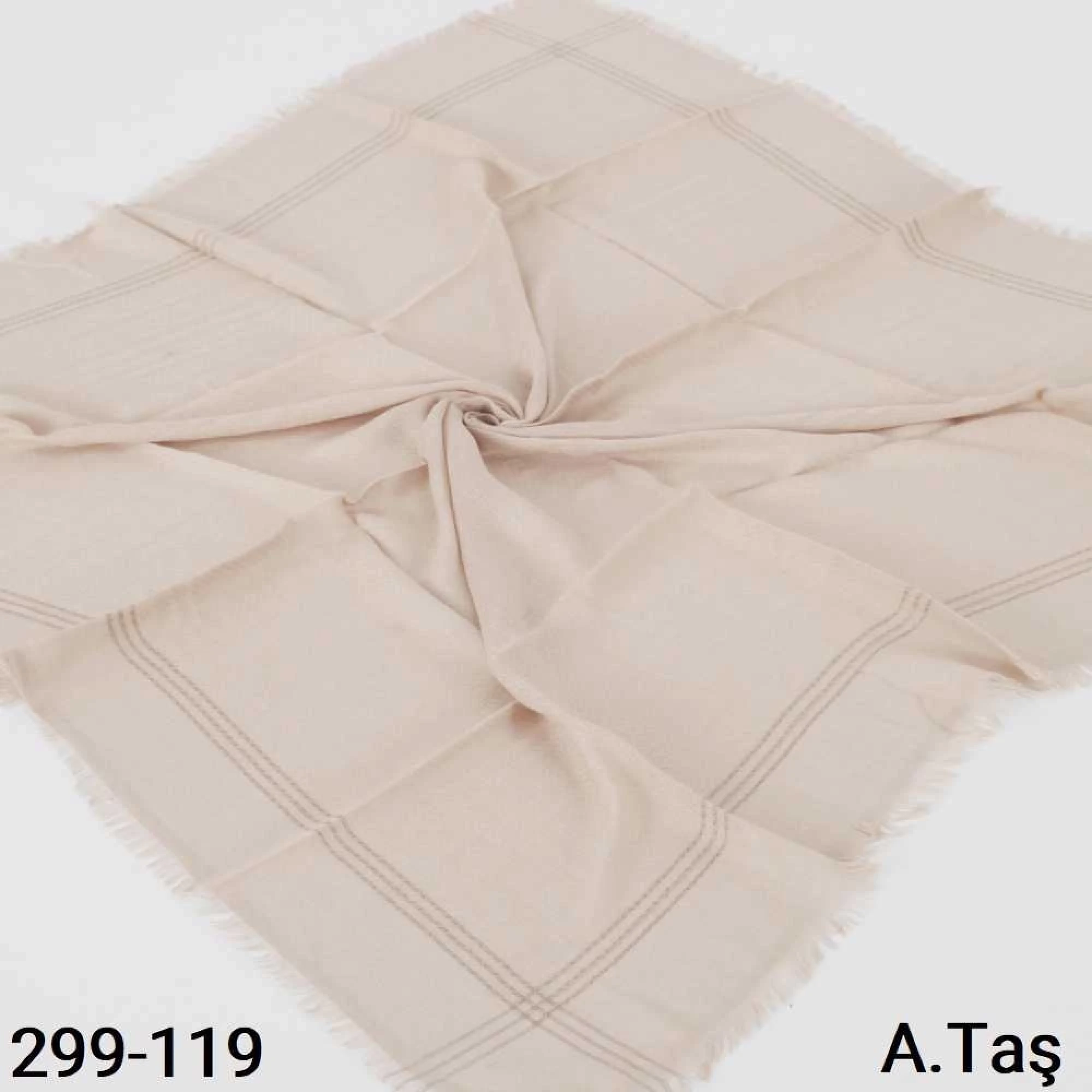 Soft İpek Sim Şeritli Balık Sırtı Pamuk Eşarp (açık taş) 299-119