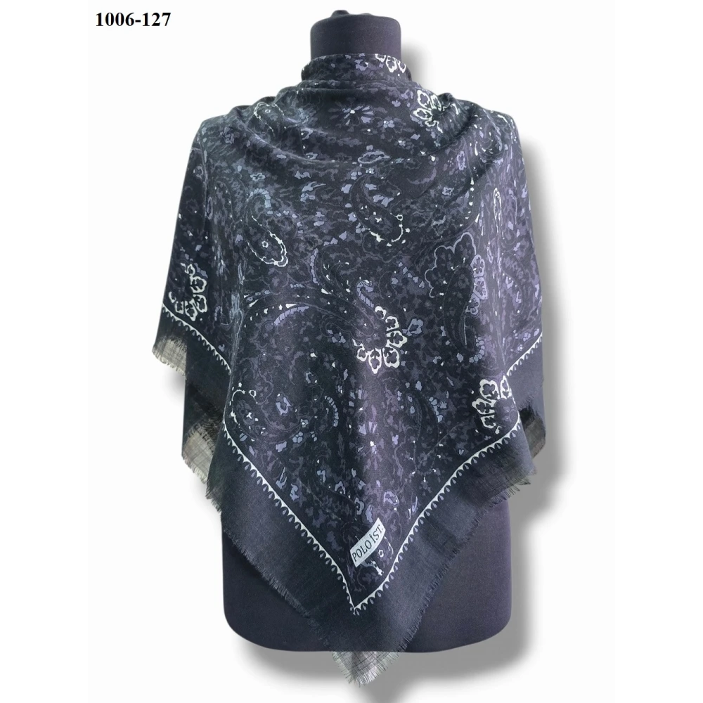 Soft İpek Sim Şeritli Balık Sırtı Pamuk Eşarp (k.gri) 299-114